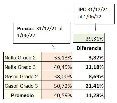 Se advierte que en el período, los precios de los combustibles normales se ubicaron levemente por encima de la inflación y los premium un poco más arriba; sin embargo estos indicadores se ven neutralizados por los faltantes de combustibles en general, especialmente en el gasoil, en sus dos variedades, en los cuales el resultado ha sido claramente negativo.