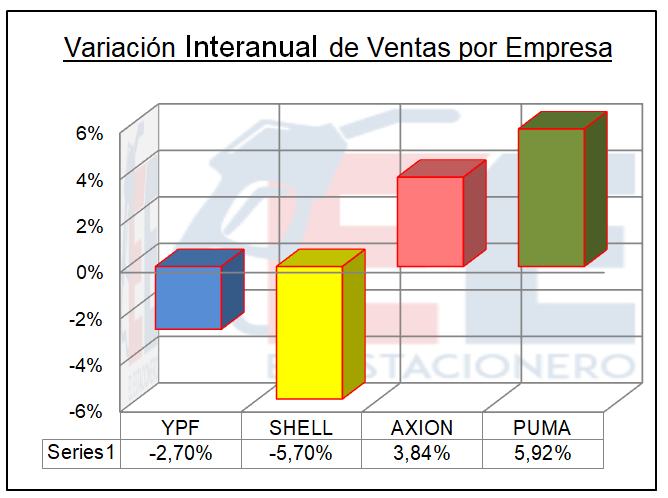 Volviendo a este último rubro que es el que interesa fundamentalmente a las bocas de expendio al público, observamos que el desempeño de cada compañía refinadora fue diferente. Tomando las tres principales empresas, podemos apreciar que mientras YPF y SHELL vieron disminuir sus ventas, AXION las vio crecer.