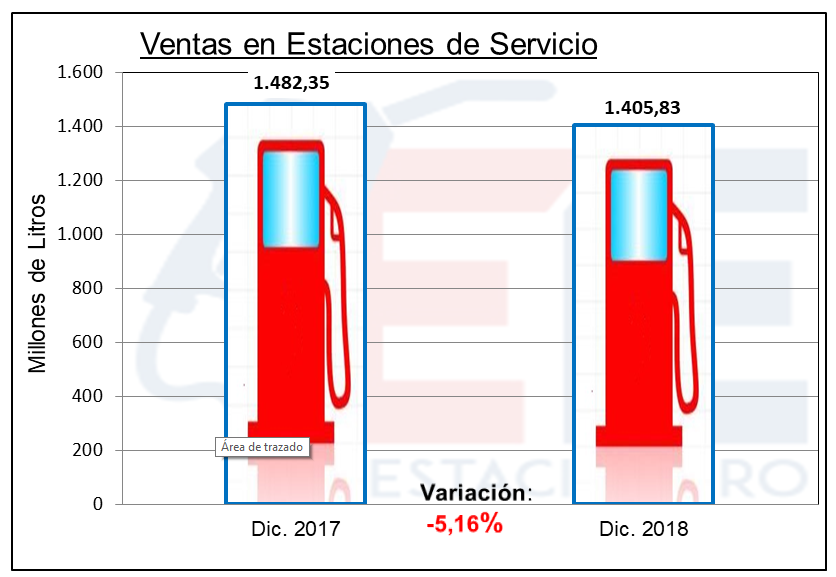 En el mes de diciembre del 2018, hubo una caída de las ventas al público de combustibles del 5,16% con respecto al mes de diciembre del 2017. Si bien no es una caída tan importante como la que se generó en el mes de noviembre (9,94%), es significativa para las estaciones de servicio.
