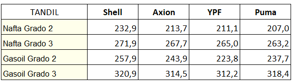 La diferencia de precios entre las distintas siglas en la misma ciudad de Tandil, es también notable.