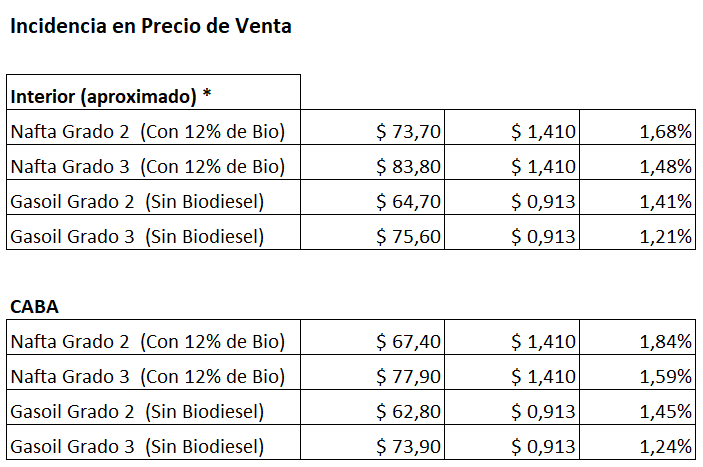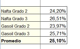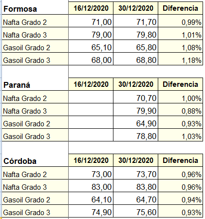 Ayer YPF completó la suba de precios de los combustibles que se había comenzado un par de días atrás y fue seguido inmediatamente por Raízen y seguramente por el resto de las empresas. El incremento promedio estuvo en el orden del 1%, con algunas diferencias según el producto y las localidades. Algunas de las variaciones registradas fueron las siguientes (valores de YPF):
