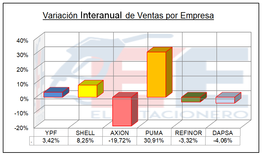 En lo referente a las variaciones de ventas por empresa, sobresale la caída de Axion y el crecimiento de Puma.