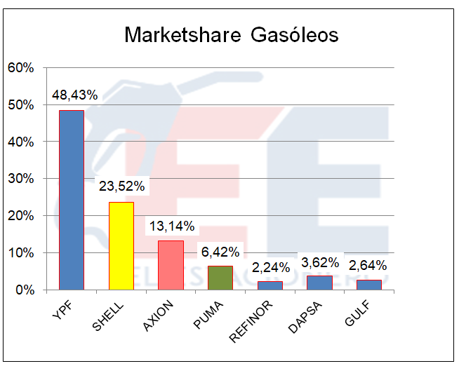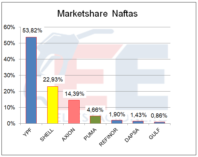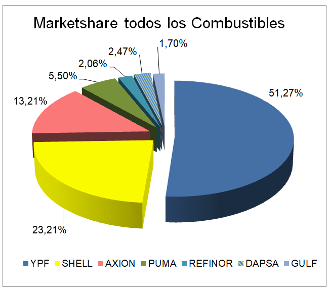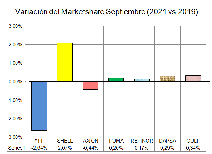 En la variación en la participación en el mercado, se ve que las empresas que disminuyeron, fueron YPF y AXION.