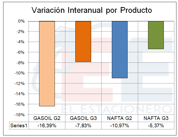 Discriminado por tipo de combustibles, los combustibles diesel perdieron más ventas que las naftas