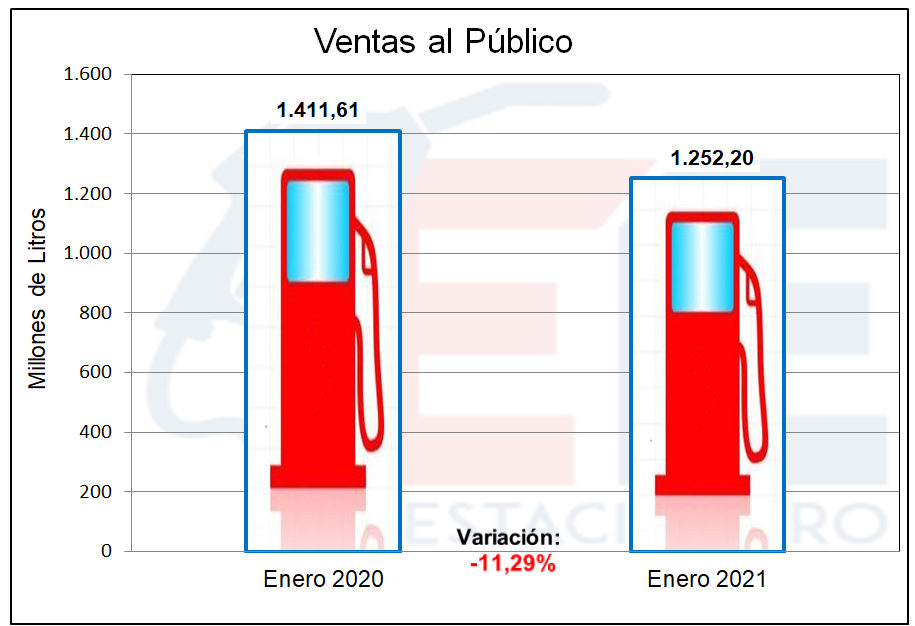 En el primer mes del año en curso, las ventas de combustibles líquidos en las estaciones de servicio se ubicaron un 11,29% por debajo del mismo mes del año anterior. De esta manera se interrumpe la tendencia alcista que venía observándose en los últimos meses luego de la tremenda caída del mes de abril del año pasado. En efecto en el mes de diciembre las ventas en la comparación interanual se ubicaban en -9,36%. Es posible que la menor actividad vacacional haya sido la causa de resultado mencionado.