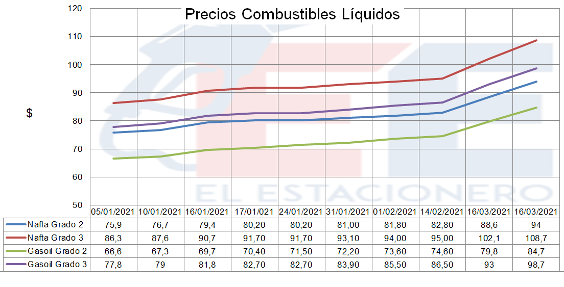 Suma 30% el incremento de precios de los combustibles en el 2021