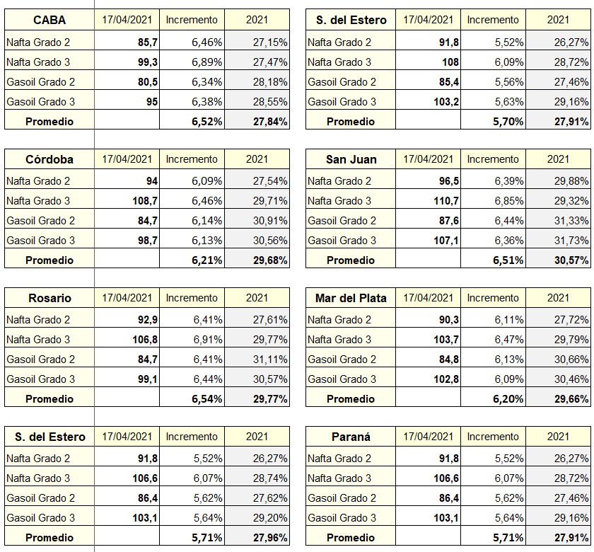 Nótese un detalle: Los anuncios hechos un par de meses atrás por gobierno y algunas petroleras en el sentido de que con la seguidilla de incrementos se achicaría la brecha de precios entre la CABA y el resto del país, estuvo muy lejos de concretarse; de hecho la diferencia no solo NO disminuyó, sino que se agrandó levemente como puede observarse en los incrementos acumulativos en lo que va del año: en la ciudad de Buenos Aires los precios se incrementaron menos que en las otras provincias.