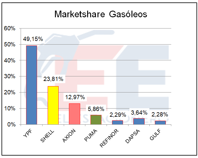 La misma participación en el mercado anterior, pero desglosada por tipo de combustible