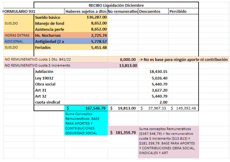 1o Parte: Salario de Diciembre con su correspondiente instructivo para la confección del F.931.
