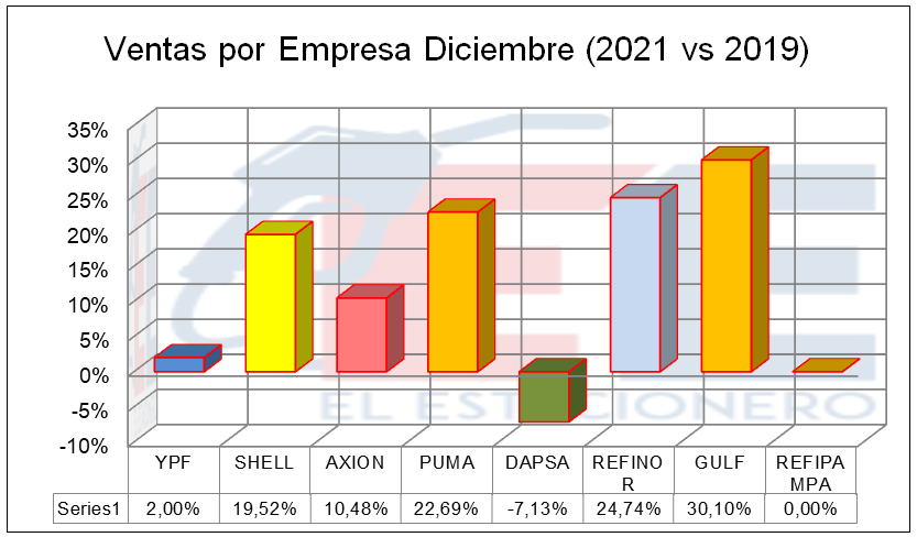 En la comparación con el mismo mes del 2019, todas las empresas, excepto DAPSA, superaron las ventas.