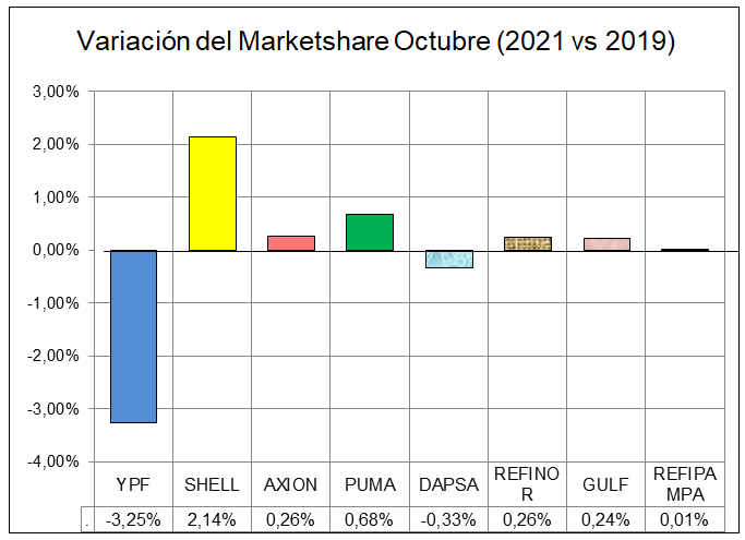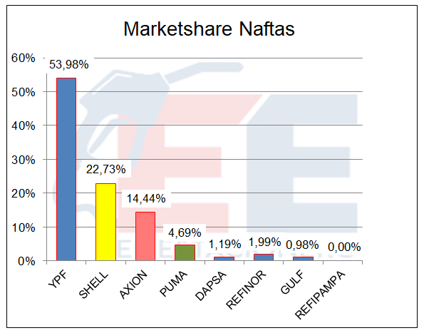 YPF siempre superando el 50% de participación en el mercado, continuó liderando las ventas.