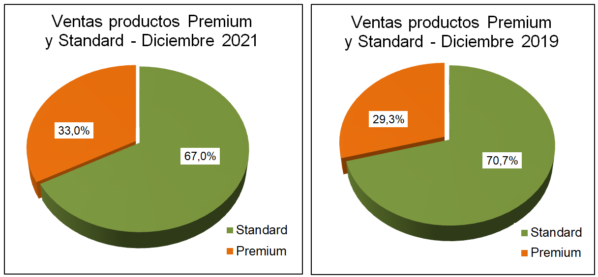 El crecimiento en las ventas de productos premium superó ampliamente al de los regulares