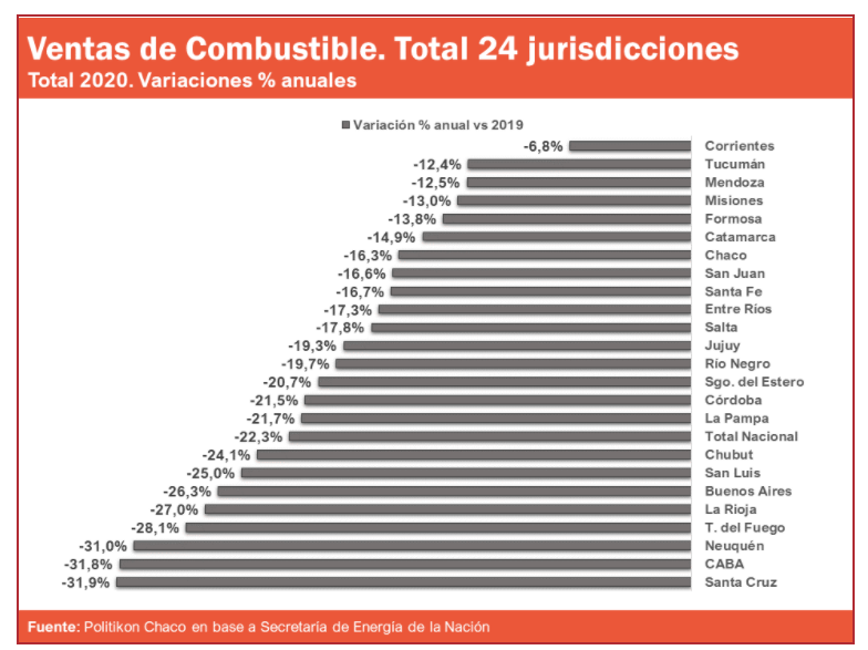 En el otro extremo, Santa Cruz (-31,9%), CABA (-31,8%) y Neuquén (-31%) mostraron las caídas más altas del país.
