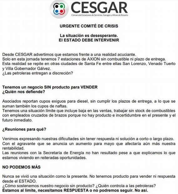 Se agrava el faltante de combustibles – Estaciones de Servicio en riesgo