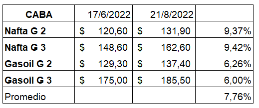 Las naftas subieron 10,30% promedio y los gasóleos 7,30%