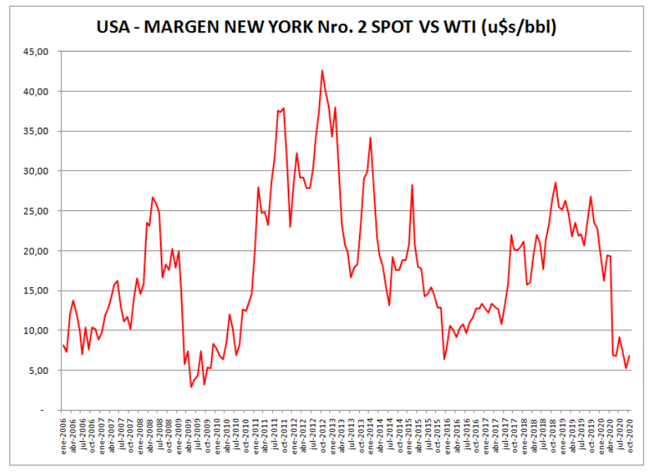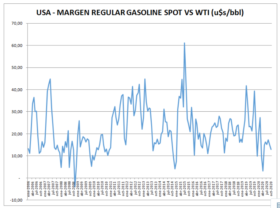 En general, los márgenes de gasoil en USA han sido inferiores a los de la gasolina.