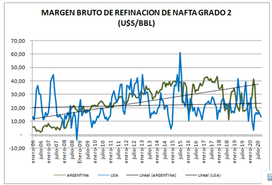 Hacemos la comparación con nuestra nafta grado 2 haciendo la salvedad de que los valores locales alcanza hasta septiembre de 2020.