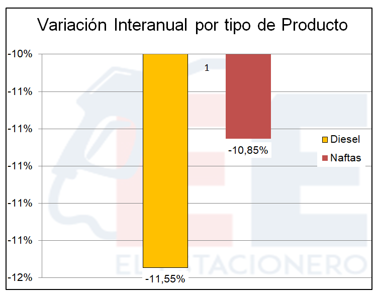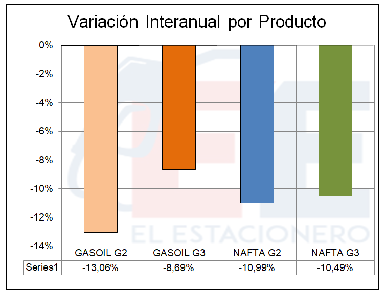 La variación en las ventas de combustibles líquidos discriminadas por producto, es la siguiente