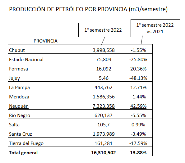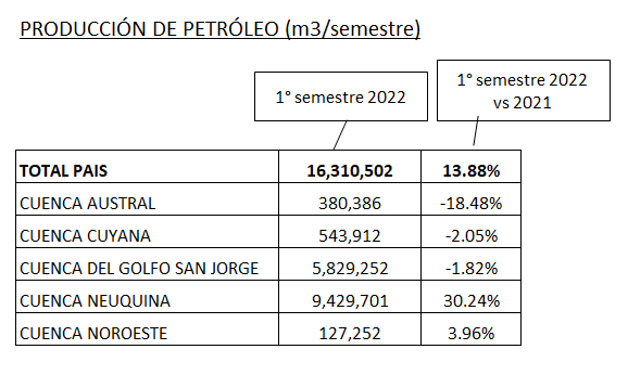 En el primer cuadro podemos apreciar un crecimiento en la producción de petróleo respecto del año pasado.