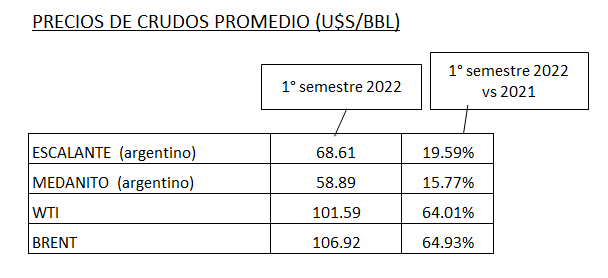 En el cuadro que sigue vemos la evolución de los precios del crudo en su principales variedades nacionales y mundiales. Se puede apreciar además la gran diferencia entre los valores internacionales y los del «barril criollo», que permitió mantener los precios de los combustibles en Argentina muy debajo del Import parity, aliviando el bolsillo de los consumidores locales y complicando la necesaria importación de gasoil.