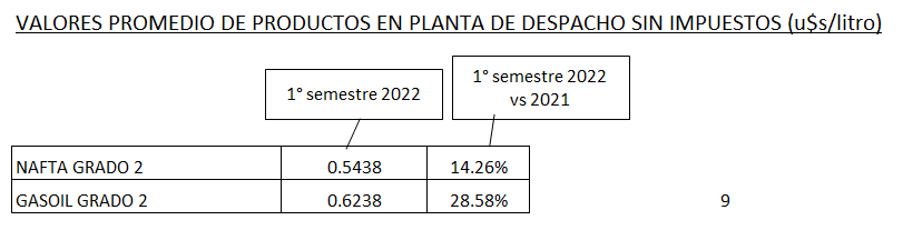 Valores de los combustibles netos de impuesto y su comparación con el año anterior