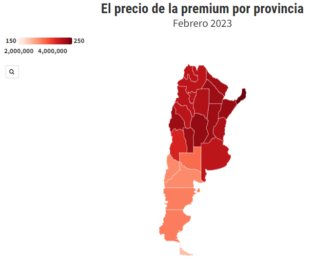 El precio de la nafta premium, provincia por provincia, a febrero de 2023