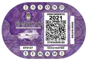 Oblea Habilitante con vencimiento 2021, destinada a vehículos propulsados a GNC