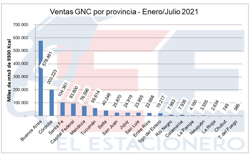 La siguiente es el detalle por provincia de las conversiones a GNC