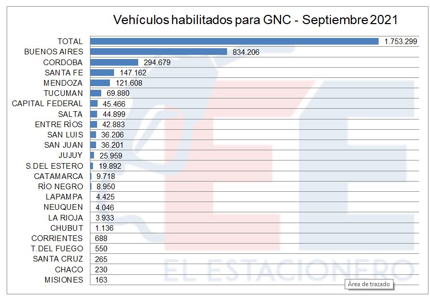 Si discriminamos el parque automotor gasero por provincias, el siguiente es el resultado