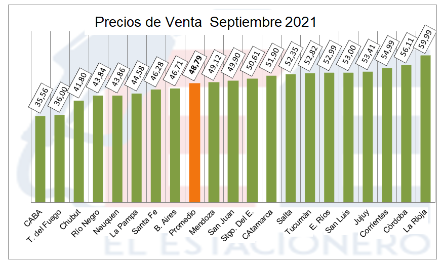 Los precios de venta al público del GNC en cada provincia en el mes de septiembre, fueron los siguientes