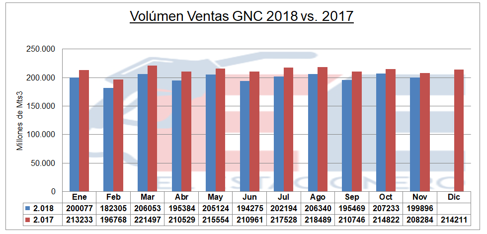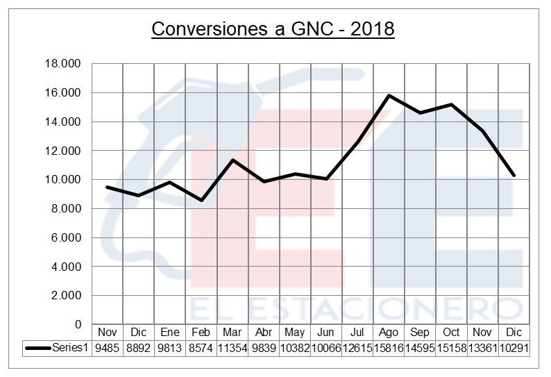Obviamente el correlato de esta situación son las ventas deprimidas de GNC en las estaciones de servicio, que durante todo el año 2018 se mantuvieron por debajo de los valores del año 2017.