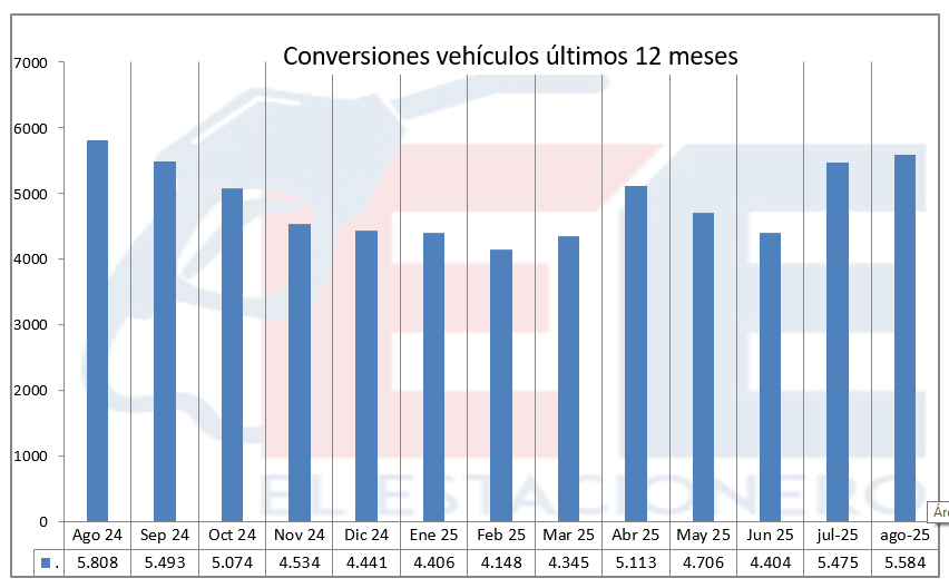Con respecto a las conversiones, con la raquítica cantidad de 5584 nuevos vehículos incorporados, se ubica por debajo de la cifra del año anterior.