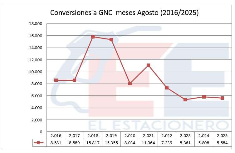 Con respecto a las conversiones, con la raquítica cantidad de 5584 nuevos vehículos incorporados, se ubica por debajo de la cifra del año anterior.