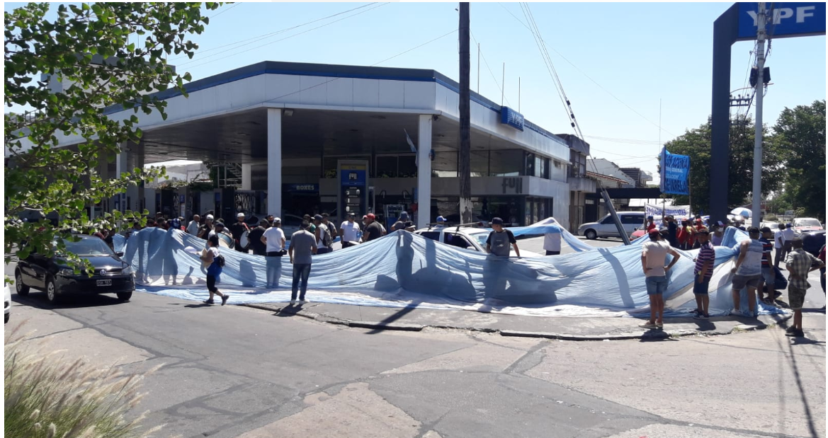 Continuando con las medidas de protesta que viene llevando a cabo el SOESGyPE, los manifestantes bloquearon la estación de servicio del vicepresidente de FECRA, Hugo Cavallero.
