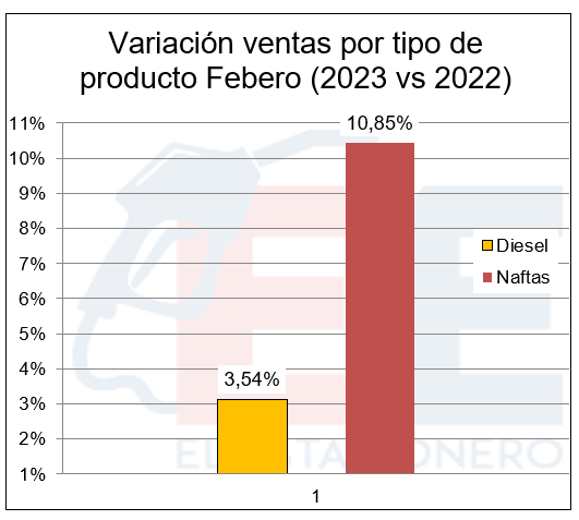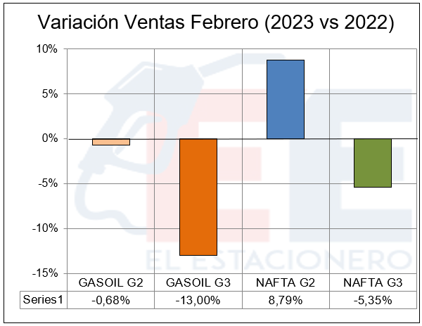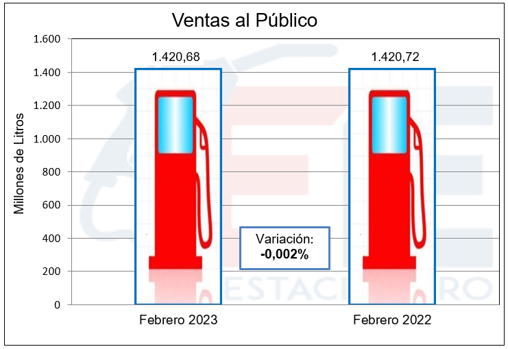 En el mes de febrero del corriente año se ha dado una circunstancia realmente notable. La diferencia entre las ventas totales en estaciones de servicio que en dicho período sumaron 1.420.685.000 litros, solo difirieron con las del mismo mes del año anterior en ¡32 litros! (en menos), es decir el 0,002%.